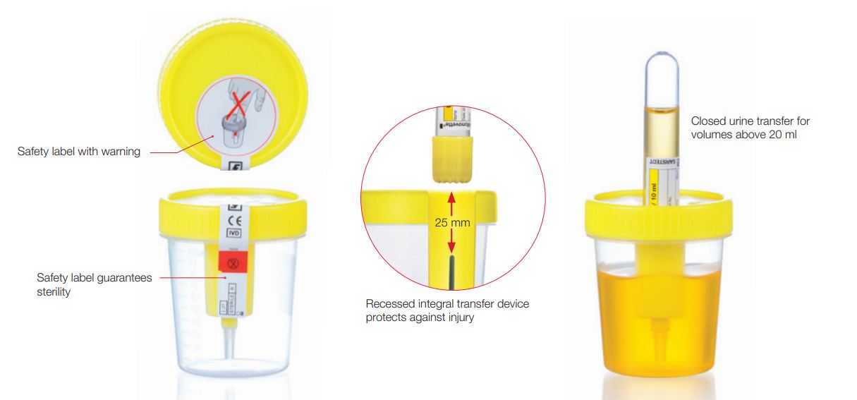 Sterilt urinbæger fremstillet i polypropylen med en integreret transferenhed, der (sammen med SARSTEDT... -