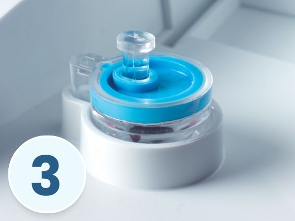 | 1. Indsæt kassetten i analyseapparatet. | 2. Indsæt prøven, og klik håndtaget af. | 3. Resultatet vises indenfor 4 minutter. | ||