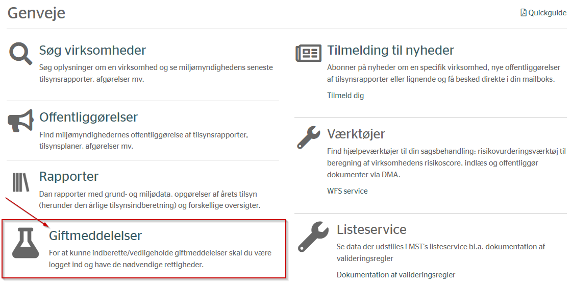 - På websiden skal du klikke på genvejen ’Giftmeddelelser’.