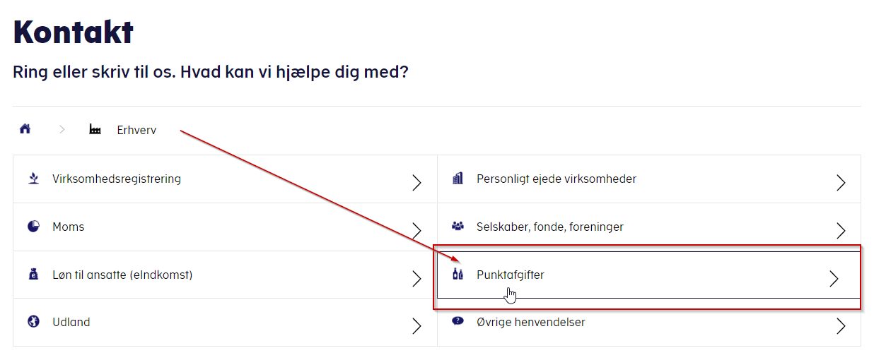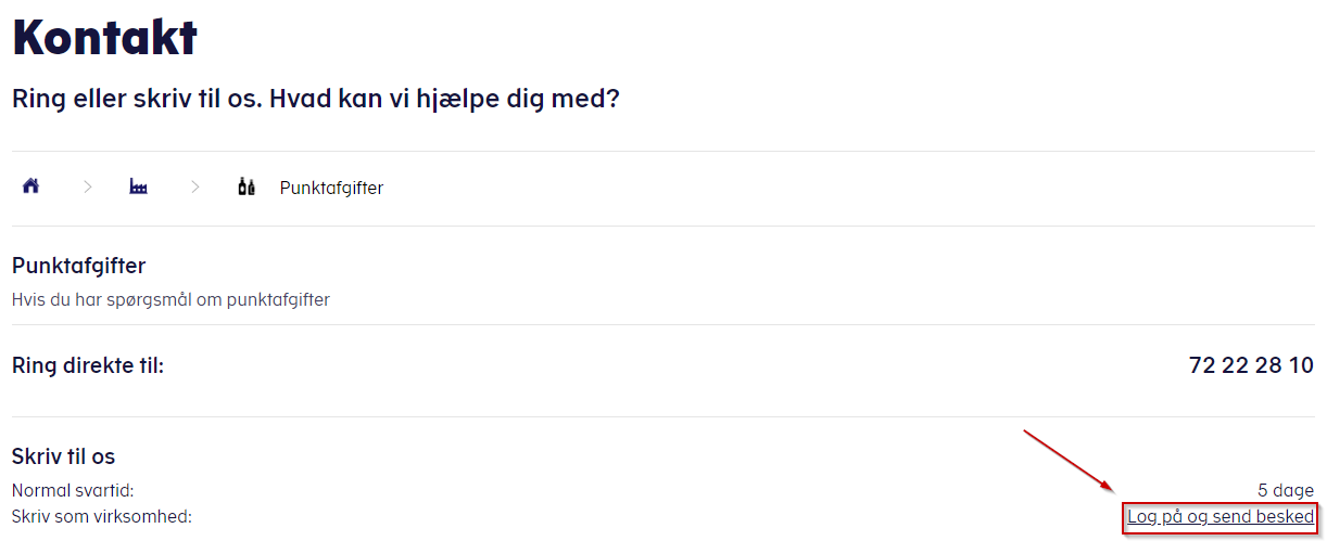 - Når du er logget på, vil du se virksomhedens stamoplysninger.