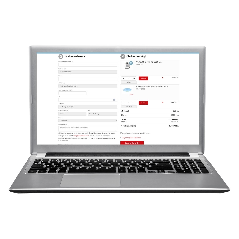 Når du har føjet de varer til kurven, du ønsker at bestille, klikker du på knappen 'Gå til kassen' nederst på siden. Du kan redigere i din ordre eller slette dele af ordren, inden du afslutter med et klik på knappen 'Gennemfør ordre'.