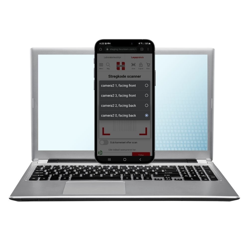 Vi anbefaler, at du benytter Hounisen® Hurtigkøb på din mobiltelefon, da det kan være svært at ramme stregkoden via et webcam eller lignende på din stationære computer. Det er stadig muligt at gennemføre dine køb via en almindelig computer, hvis du ikke ønsker - eller ikke har adgang til - at bruge en mobiltelefon til bestillinger.