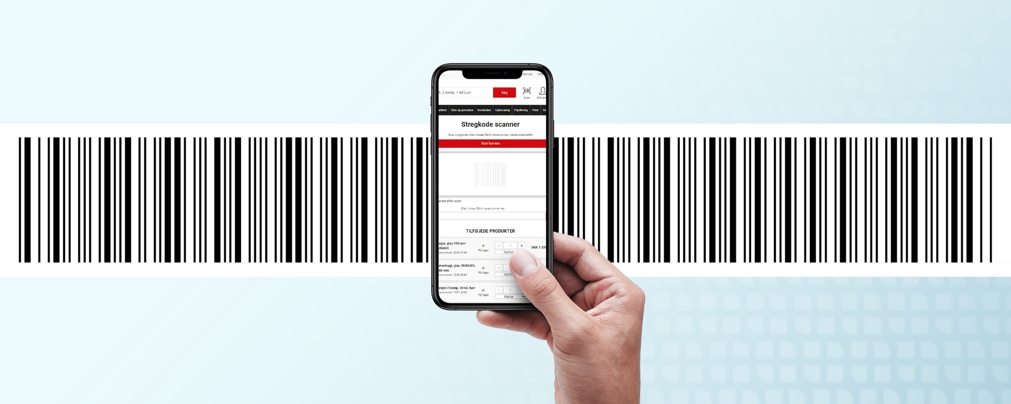 OBS - Du vil ikke kunne scanne en vare, der er købt hos en anden leverandør, ligesom varen skal være tilgængelig på Hounisens webshop, for at den kan bestilles. Vi arbejder løbende på at få producenternes stregkoder ind i systemet, men indtil da anbefaler vi, at du scanner Hounisens egne stregkoder.