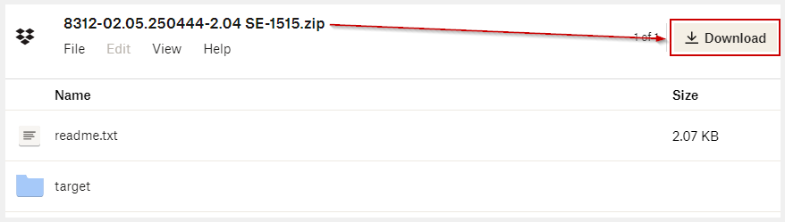 - Version 2.04: 8312-02.05.250444-2.04 SE-1515 ➜ Vælg Udpak alle...