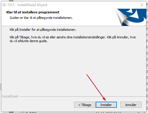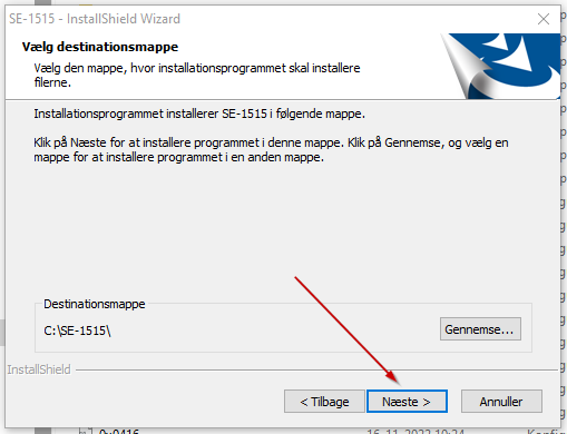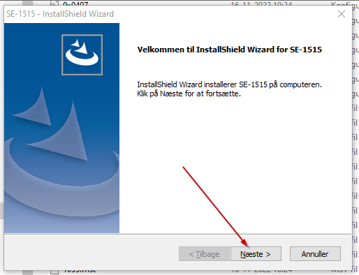 - Meddelelse: "Velkommen til InstallShield Wizard for SE-1515" ➜ Klik Næste >