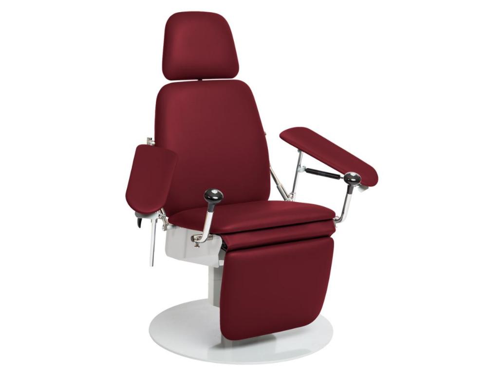 Stolen er fremstillet i kraftig metal og er stabil for patienter med vægt op til 200 kg. Højdejustering lige op og ned. Prøvetagningsstolen har centralplaceret justeringssøjle, hvilket gør, at stolen justeres lige op og ned og ikke optager unødig plads i klinikken.