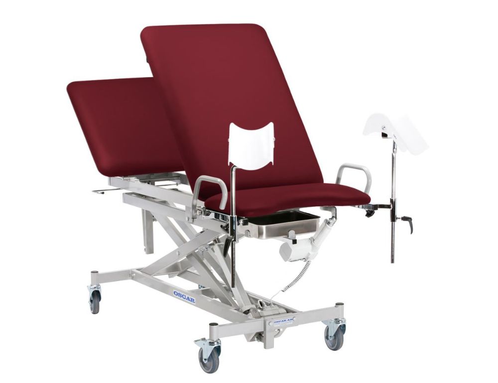 Gynækologisk kombileje, der kan anvendes både som stol og som liggende leje, og som klarer en patientvægt op til 200 kg. Elektrisk regulering af højde og positioner. Mulighed for chokleje. Højderegulering lige op og ned, 52-100 cm. Gynækologiske benstøtter kan justeres både i højde og dybde og tages af, når de ikke er i brug.