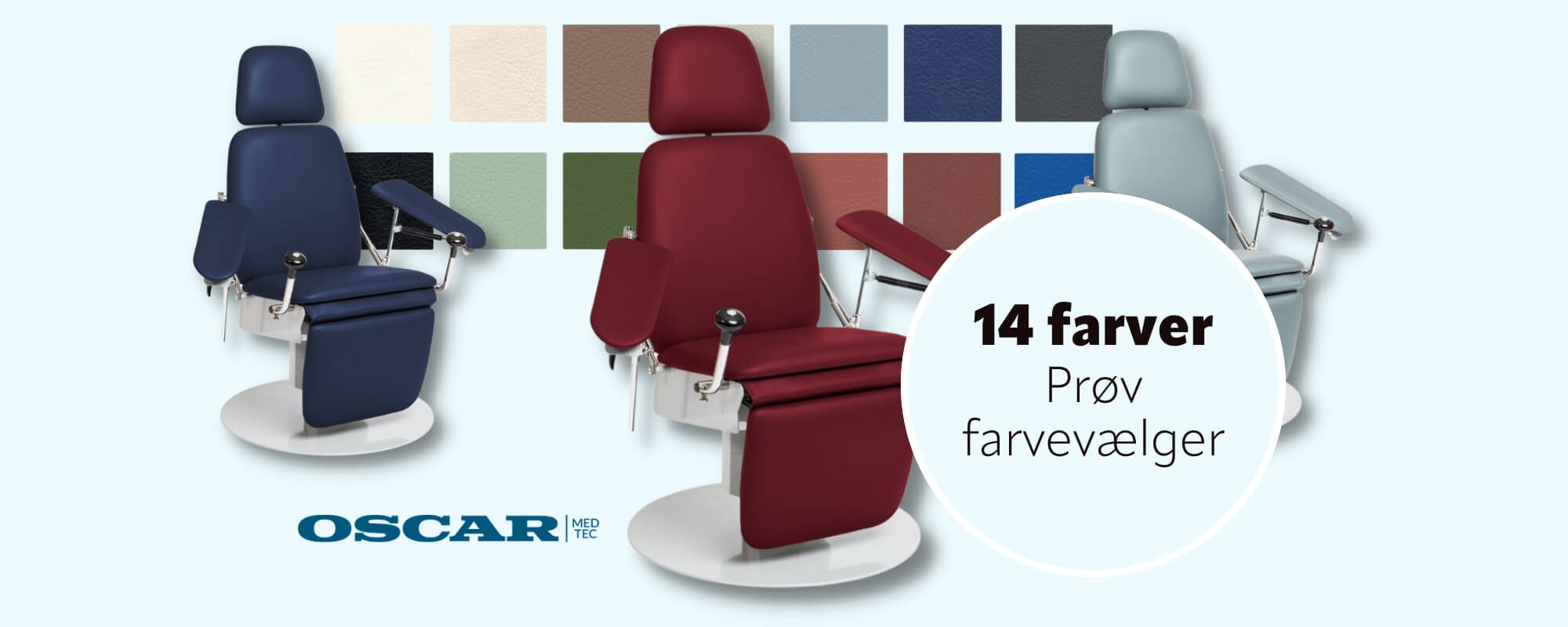 Prøv den interaktive farveguide på Oscar Medtecs hjemmeside, og se, hvordan inventaret kan tilpasses udstykket i din egen klinik.