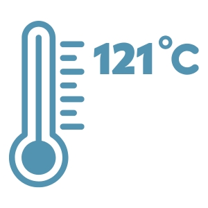 Dampsterilisering anbefales ved +121 °C, +126 °C eller +134 °C, afhængigt af anvendelsen. Til vejledning angiver den britiske standard BS EN 285:1997 8.3.1: