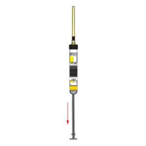 Vend Urin-Monovetten® med spidsen opad, og træk stemplet helt i bund for at fjerne eventuelle urinrester fra rørets spids.