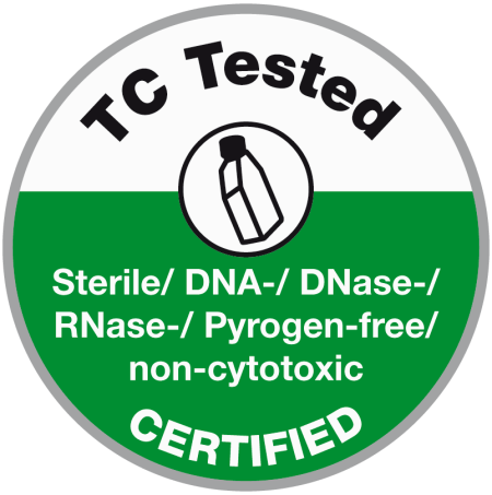 ✓ Sterile ifølge DIN EN ISO 11137 ✓ DNA-/DNase-/RNase-fri ✓ Pyrogen- og endotoksinfri baseret på LAL Test (<0.06 EU/ml) ✓ Ikke-cytotoksiske ifølge DIN EN ISO 10993 |