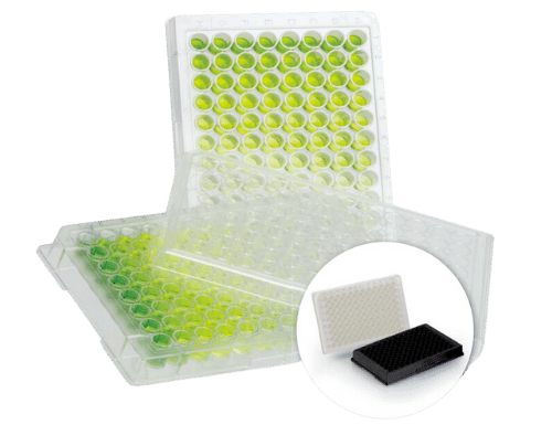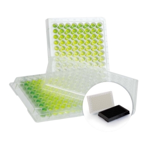 De hvide og sorte ELISA-plader fra SARSTEDT har en meget lav autofluorescens, der forbedrer lyssignalet og minimerer lysspredning, hvilket gør dem er særligt velegnede til fluorescence og luminescence assays.