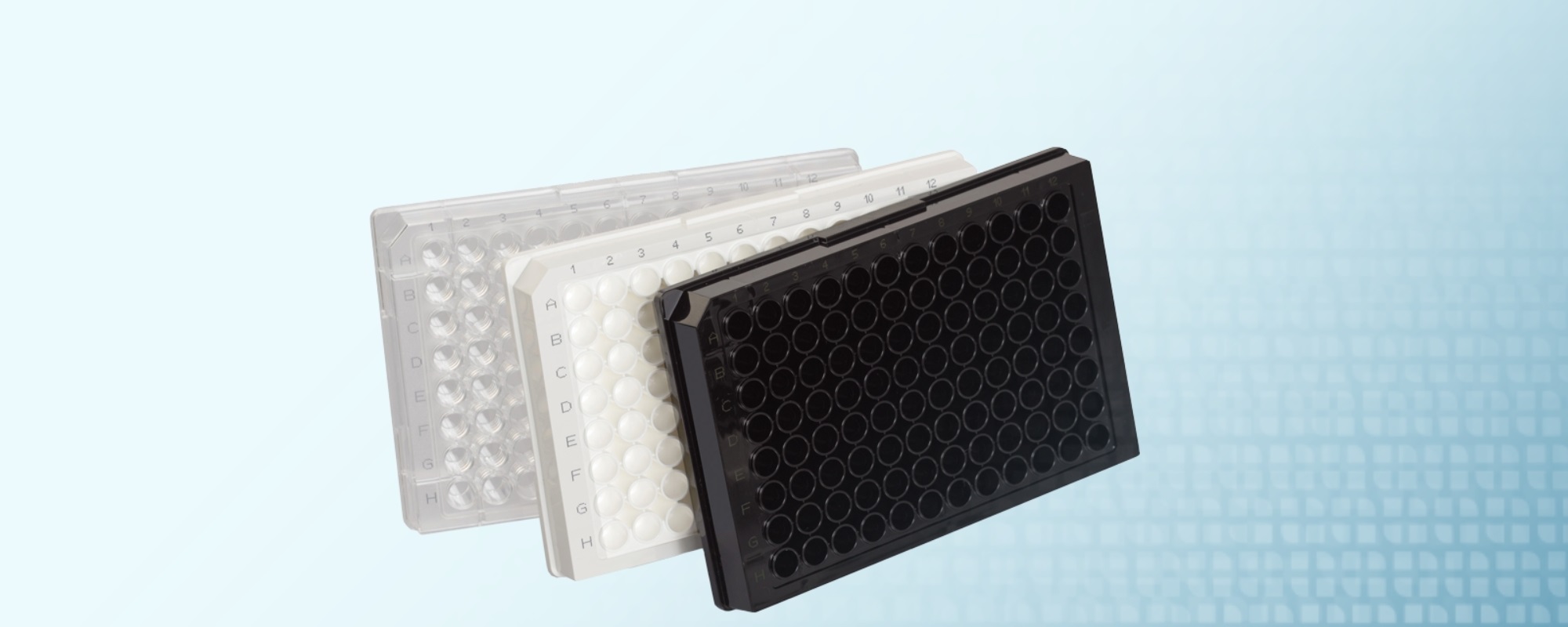 ELISA-pladerne er med alfanumerisk identifikation af brøndene, og de kan bestilles med flad, rund eller spids bund. Pladerne følger ANSI-standardmålene og passer til de mest almindelige dispensorer, vaskere og readere. Lot-nr. og udløbsdato er fortrykt på hver plade for optimal sporbarhed. Der er mulighed for at bestille barcode på pladen.